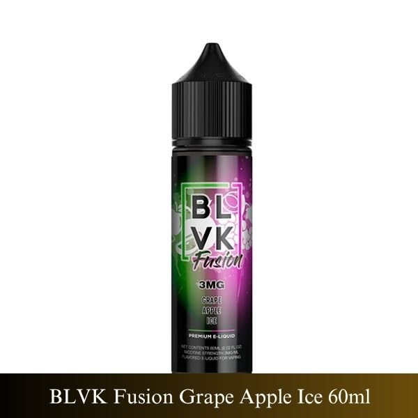 BLVK Fusion Grape Apple Ice 60ml blends crisp apple, juicy grape & menthol. A fruity, icy vape made in the USA—perfect for all-day vaping in Dubai.