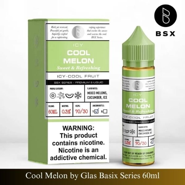 Cool Melon by Glas Basix Series 60ml – sweet melon, cucumber & menthol blend for a refreshing vape. Perfect fruity ice vape for Dubai heat.