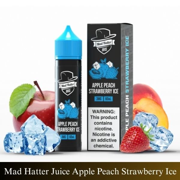 A fruity fusion of apple, peach, and strawberry with an icy twist. Try Mad Hatter Juice Apple Peach Strawberry Ice Dubai for an all-day vape experience.