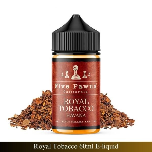 Royal Tobacco by Five Pawns blends Cuban cigar leaf and tropical fruit for a rich, bold, and refined tobacco vape experience in every 60ml bottle.