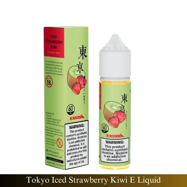 Tokyo Iced Strawberry Kiwi E-liquid delivers a frosty fruit blast with ripe strawberries, tart kiwi, and icy menthol – a perfect summer vape sensation.